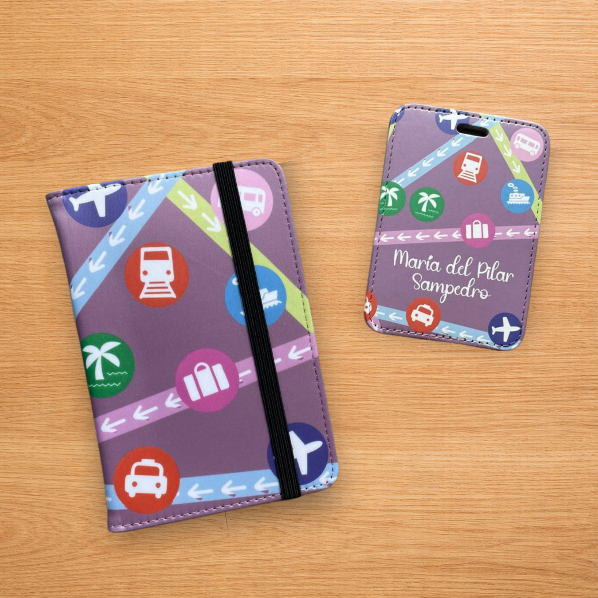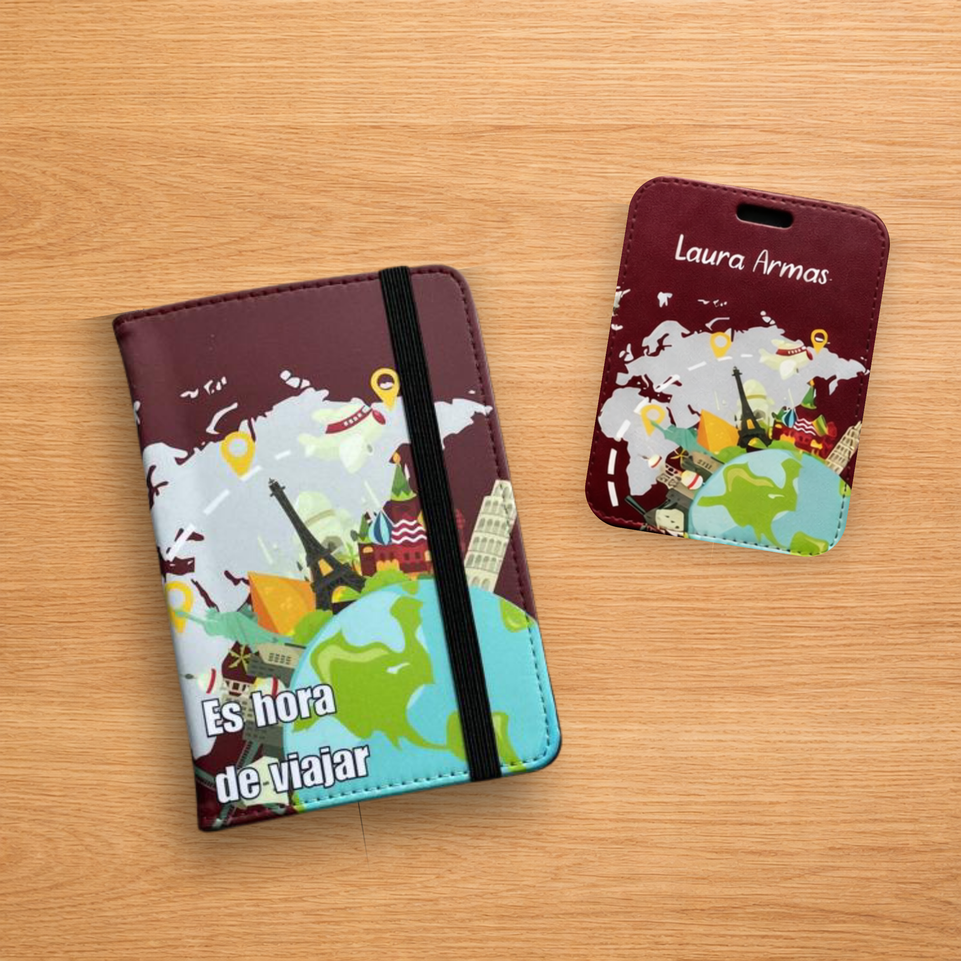 Nuestro Porta pasaporte y la Etiqueta de Maletas pueden personalizarse con logos, fotos, imágenes y frases, convirtiéndolos en dos productos únicos y especiales.